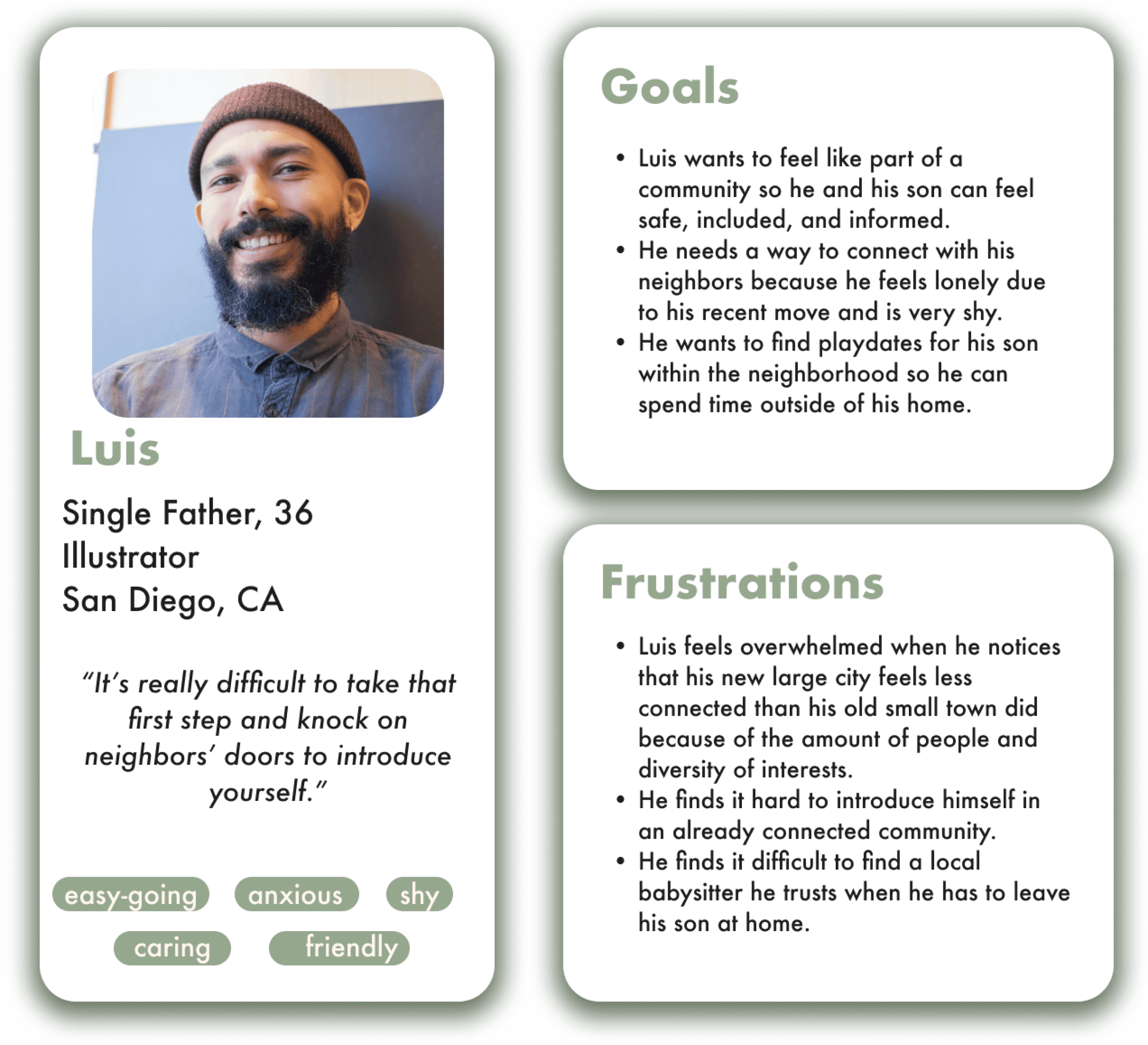 We had also considered a secondary persona who holds the lowest percentage of activity on the platform. Although this wasn't our primary target, having this persona in mind proved beneficial when redesigning the website to consider ways to reach out to less active locals.