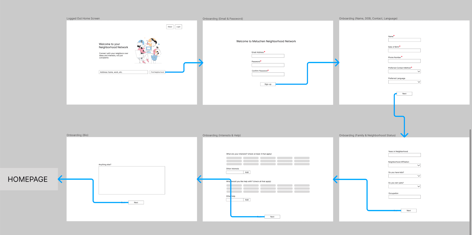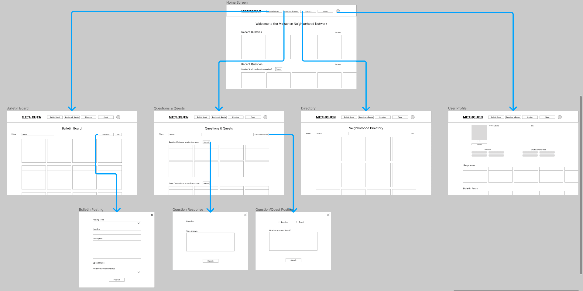 Once we had our final sketches revised, pulling unique elements from each member’s iterations, it was a smooth process creating the initial low-fidelity wireframes on Figma for client and stakeholder feedback.